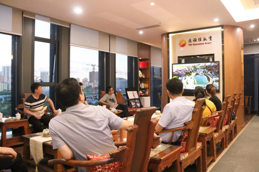 考察團先后參觀考察了位于總部附近的遠恒佳培訓學校——龍華教育城:美術培訓中心、音樂培訓中心、早教中心,遠恒佳倍得分線上教育平臺研發中心,國際交流中心,最后來到集團總部參觀并進行座談交流研討。