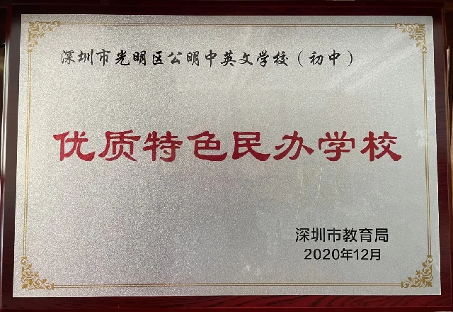 全國民辦教育先進單位、廣東省義務教育標準化學校、廣東省綠色學校、深圳市優質民辦學校(連續三屆)、深圳市德育示范校、深圳市平安校園示范校、光明新區教育先進單位、光明新區幸福校園示范校、光明區初中教育特色學校