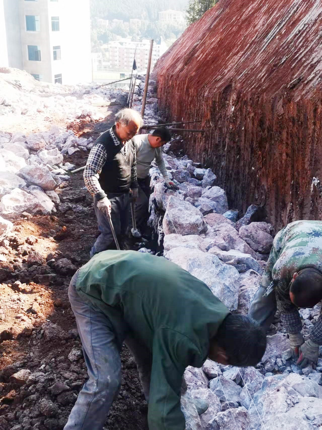 ? 工人們正在緊張有序砌筑擋土墻 ?