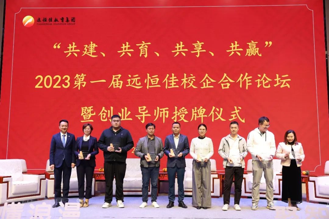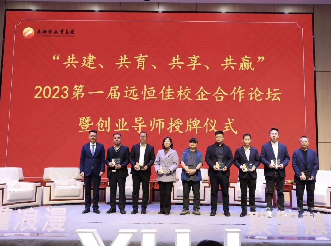 遠恒佳現代產業學院首創了公司制職業教育模式,學生組建28人創業小組,成立了創業公司,通過企業課堂、企業家大講堂、公司例會和創業實踐項目等,開展創新創業學習實踐。為更好地實施公司制教育模式,本屆論壇聘任了40位企業家擔任創業導師,隆重舉行創業導師授牌儀式。遠恒佳教育集團宋遠標董事長、麥麗芬副董事長向創業導師們頒發了導師牌匾。