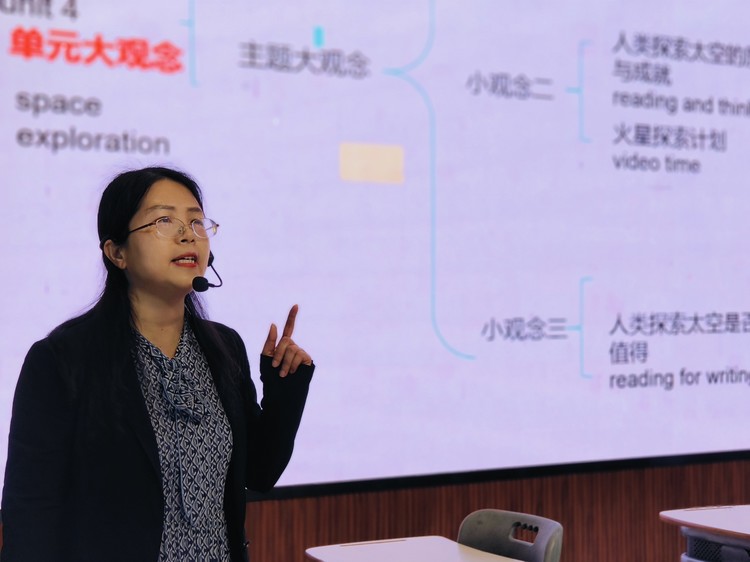 接著,長壽中學譚曉娟老師說課《Unit 4 Space Exploration ——Listening and Speaking》。譚老師深刻地分析了單元大觀念教學和實際教學金幣貼合的實際,特別是針對聽力教學方面,提出了自己的真知灼見。