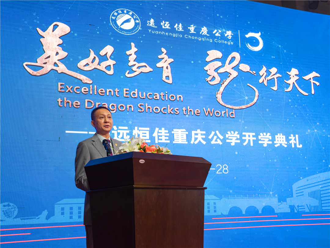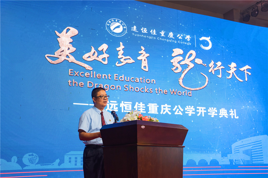 十點三十分,在全校師生的歡呼聲中,深圳市遠恒佳教育集團董事長宋遠標先生致辭并宣布遠恒佳重慶公學正式開學。總校長王振權先生在講話中提出了“六個最”的辦學方向——“最課程”、“最校園”、“最精英”、“最環境”、“最理念”、“最未來”,揭開了公學教學的新篇章。美國合作校索斯蘭國際學校校董鄧肯先生致辭,對公學優美如畫的環境、豐富的教育資源、國際化辦學贊不絕口。