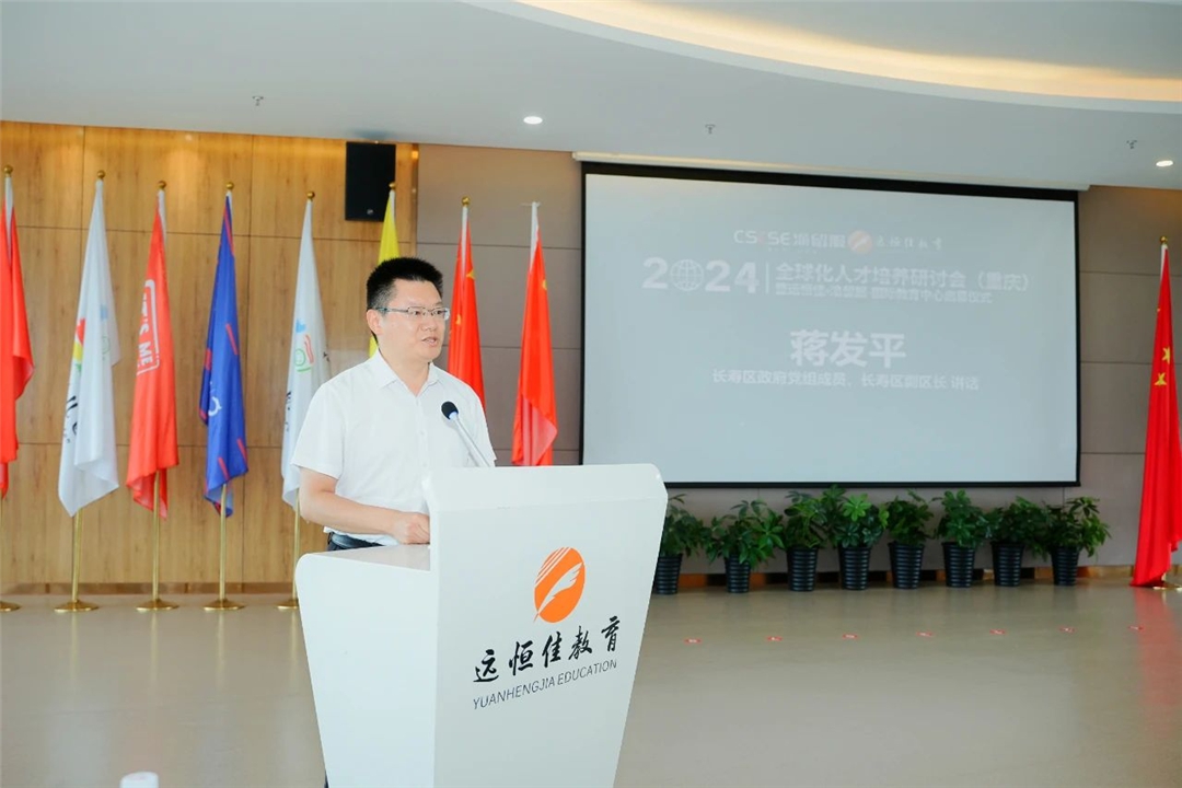 蔣發平在致辭中說,長壽區正加快推進國際化綠色化智能化人文化中國長壽城建設,全球化人才培養研討會暨遠恒佳?渝留服—國際教育中心的啟幕,將帶來更多與國際接軌的教育機會,吸引更多國際教育資源落地長壽。要充分利用好這一交流平臺,積極搭建國際教育“連心橋”,努力拓展國際教育“朋友圈”,讓更多長壽師生走出國門、走向世界,拓展國際視野、參與國際交流,共同助力長壽國際化教育事業大步前行。