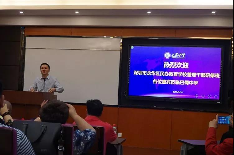 5月10日下午,全體學員到魯能巴蜀中學考察學習交流,在魯能巴蜀中學張勇校長的帶領下,全員參觀了學校的校園文化建設、特色班級管理、圖書室、現代化實驗室等,學員們對魯能巴蜀中學的現代化管理和學校的高段優質管理給與了高度贊揚,同時邀請了張勇校長給學員們做了辦學經驗和管理經驗分享。并現場對深圳龍華區的學校舉辦者和校長的問題給出了解答和可行性意見和建議。