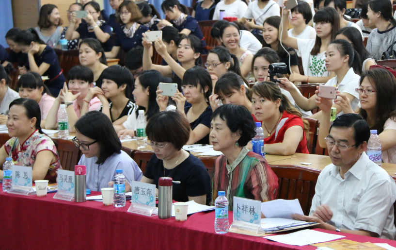 2016年6月14日幼教中心在龍華中英文實驗學校階梯教室開展“PCK背景下散文圖畫書讀本分析路徑及閱讀活動指導策略研究”,哈佛大學教育研究院凱瑟琳斯諾教授的博士后陳思老師,寧誼幼教深圳中心主任馬靈雁、教研員潘莉華、羅聘婷,集團幼教中心教學總監唐玉萍,幼教中心主任彭雪莉,龍華中英文實驗學校卜祥林校長,以及23所課題園園長、教師,共171人參加了該研討活動。
