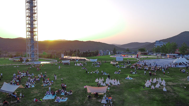 星空露營(yíng)園以帳篷露營(yíng)、戶外美學(xué)、潮流造趣和內(nèi)容聯(lián)合等元素,開創(chuàng)了全新的戶外生活方式。我們整合了營(yíng)地、景區(qū)、休閑、研學(xué)、運(yùn)動(dòng)、玩樂(lè)、主題活動(dòng)等模式,推出了載人無(wú)人機(jī)、太空VR體驗(yàn)館、蹦極塔、燒烤區(qū)、篝火晚會(huì)、一九酒吧、星空音樂(lè)吧等項(xiàng)目,滿足不同人群的山野體驗(yàn)、精致露營(yíng)、親子游樂(lè)、文青聚集、潮玩打卡等需求。